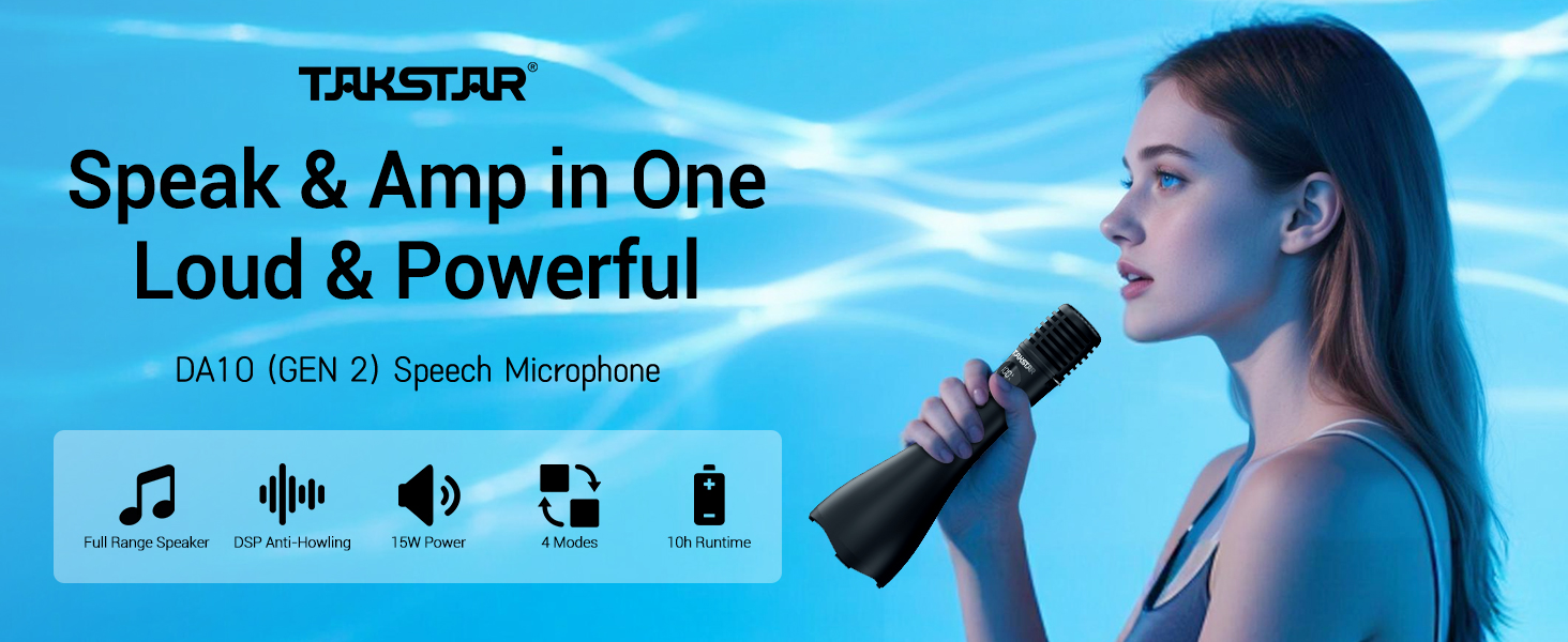 Multifunctional Bluetooth Mic - The DA10 II multifunctional speaking microphone was combined a microphone, amplifier, and speaker into one unit,poratable, easy to use, with four voice modes (Speech/Hosting/Karaoke/Music), and keep the last-used mode upon start.