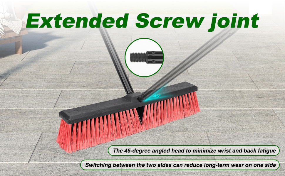【EFFECTIVE CLEANING 】The 45° inclined brush surface angle makes it easy to remove dirt in the gaps,making the courtyard ground look brand new,The hard broom head and handle are connected by threads, which makes them less likely to loosen