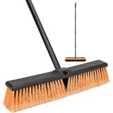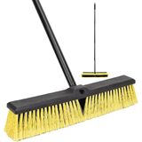 【18" WIDE STIFF LEAF BROOM】: 18" Wide Stiff Commercial Push Broom-Wide hard push broom - The shop broom has a large width and can sweep a wide area. It has a large number of bristles and two handle slots. If you find that the bristles are unevenly worn, you can replace both sides. The iron rod length is 64.5 inches, so you don't need to bend over