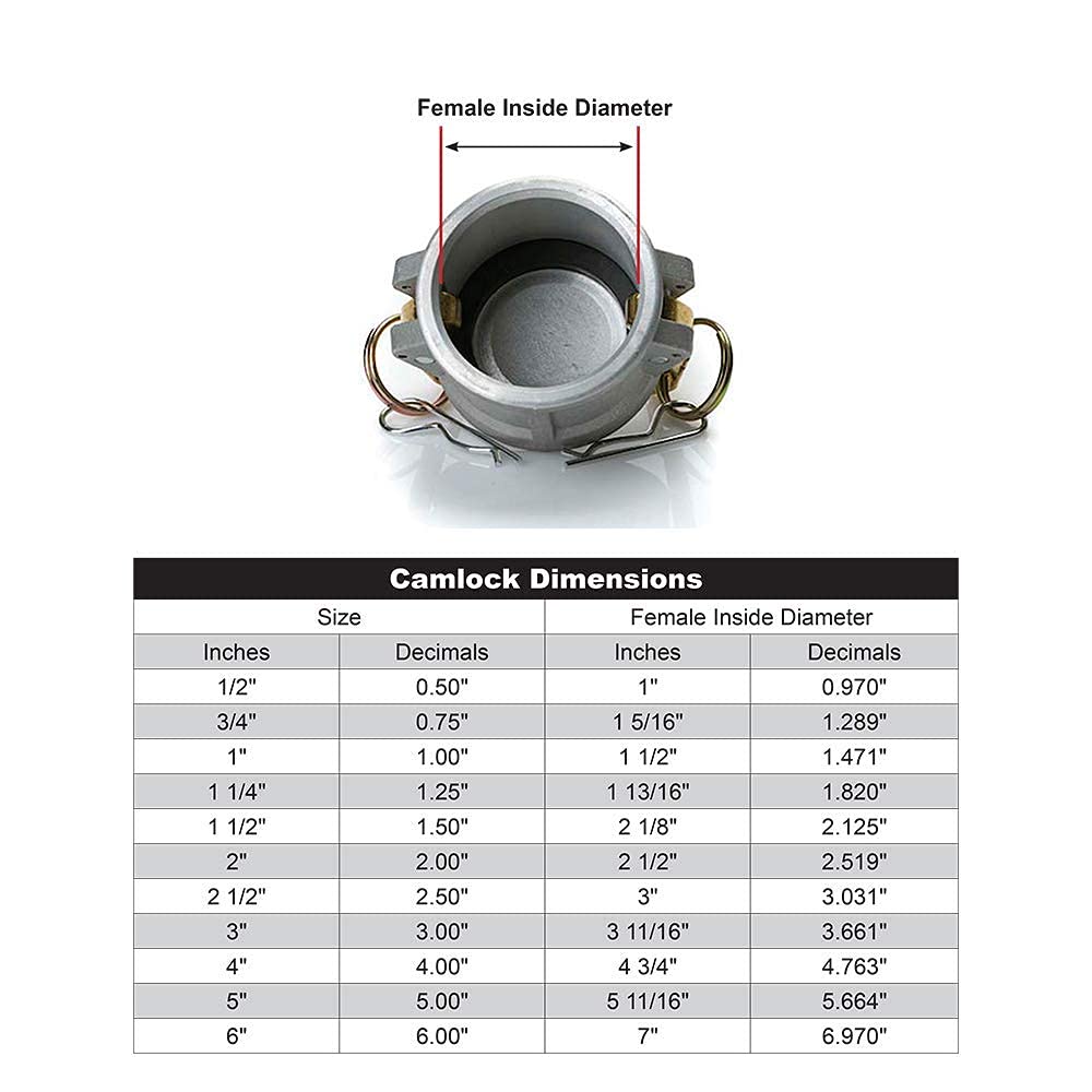 Global type "DC" aluminum 6 inch female camlock dust cap. Under no circumstances should cam and groove couplings be used for compressed air or steam service! Dust caps and dust plugs are not to be used in pressure applications for safety and environmental reasons.