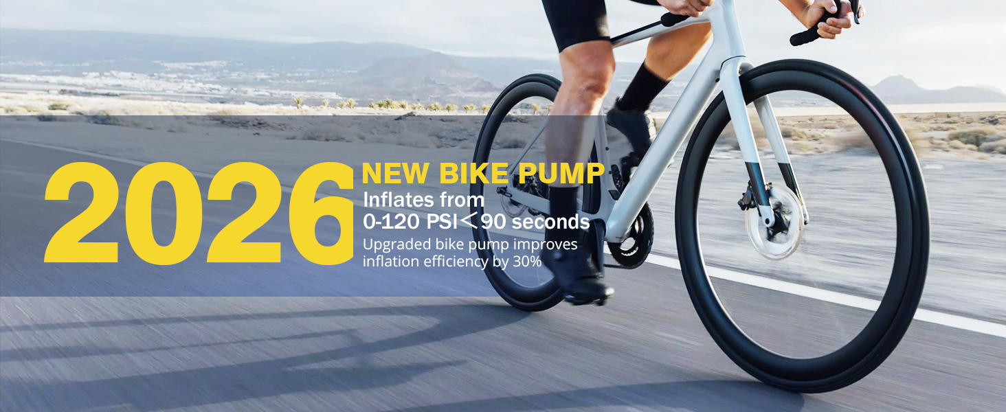 【Portable & Safety Bike Pump】This mini bike pump weighs only 0.4lb (180g) and measures 3.9 x 4.9 x 1.8 inches, making it ideal for on-the-go use. Inflates a 700*23c road tire from 0 to 120 PSI in just 60 seconds and refills a 700 x 25C tire (0-120 PSI) in 90 seconds. The overheating warning ensures safe operation.