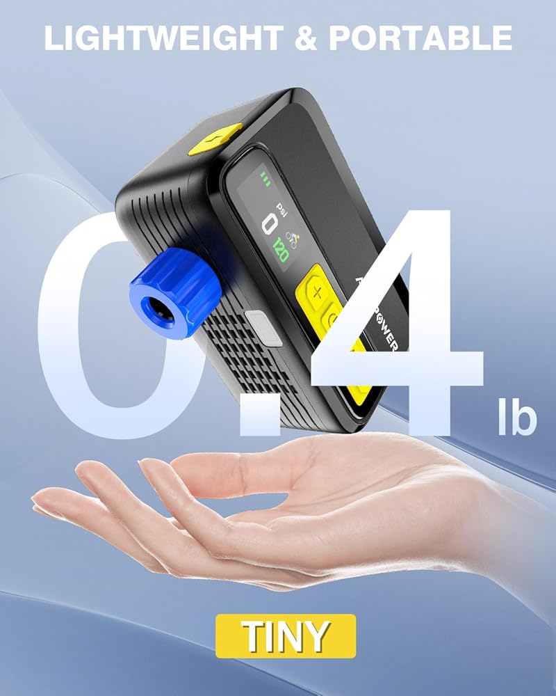 Auxpower New Electric Bike Pump-Mini Portable Bike Tire Pump with Gauge, 120PSI Portable Bicycle Pump Fast Inflation, High-Performance Air Pump for Bike Tires and Balls (Presta & Schrader)