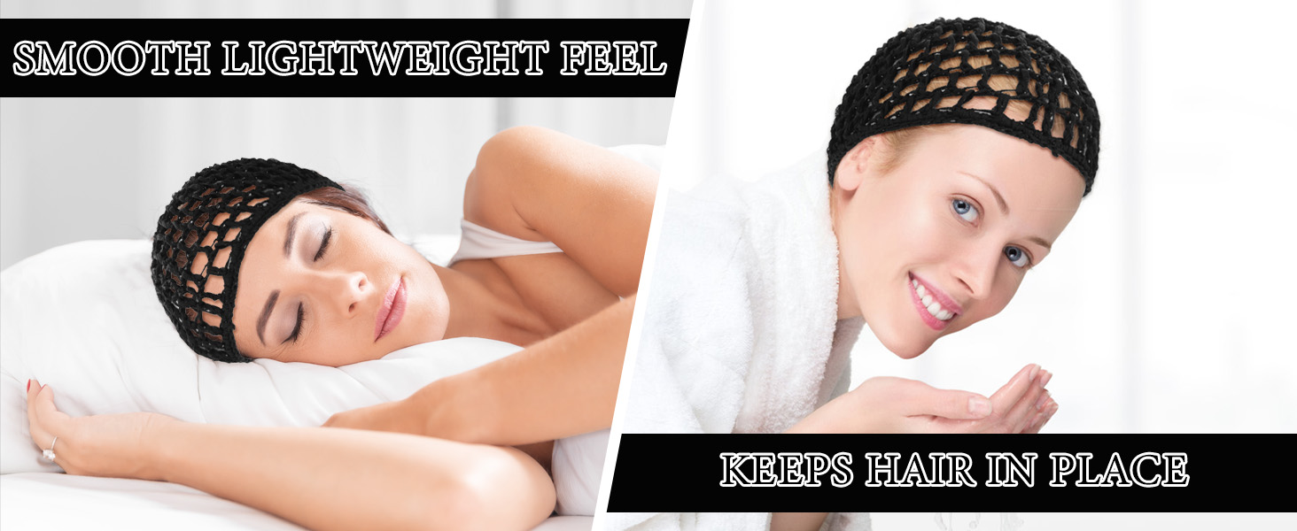 Hair Wrap Net for Silk Press, 2Pcs Comfortable Hair Wrap Cap for Sleep, Mesh Crochet Nets Reusable Elastic Cap for Sleeping Shower Makeup, Holds in Place All Night, Black