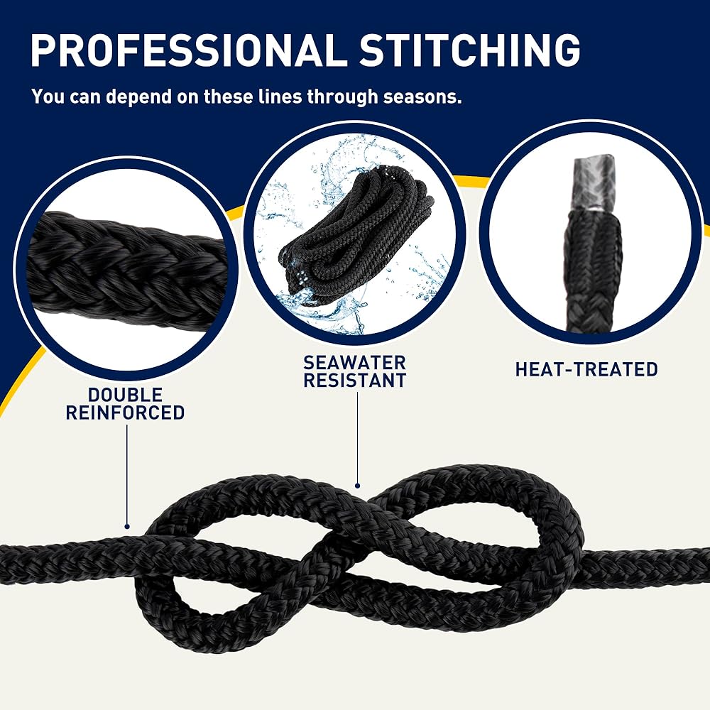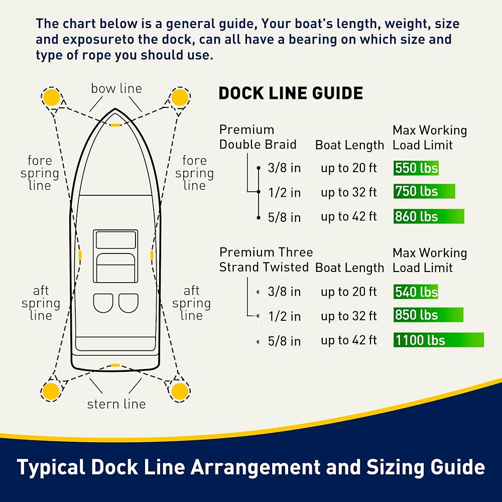 【Multi-Scene Adaptation】Boat dock lines 3/8 simple to operate, compatible with various boat types including small sailboats, speedboats, fishing boats, etc. Meets diverse needs such as mooring and water equipment fixation, delivering strong practicality