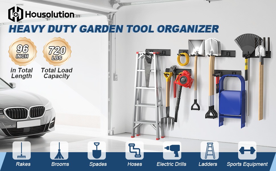 Space Saving Helper: Let you get maximum storage from a minimal space on your wall. Ideal for hanging gardening tools like shovels, hoses, gloves, shears, digging tools, rakes, spade, broom, mop, etc; garage tools like saws, cables, power drills, ladders, and any tools with rod, effectively save storage space and keep your tools tidy and orderly.