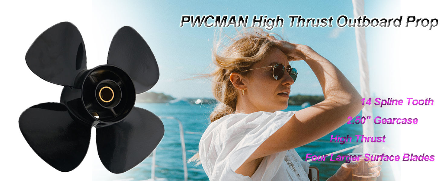 Widely Application: We have had great results with the PWCMAN 4 Blades High Thrust Propeller which is available for most "kicker size" motors (9.9 HP Bigfoot /9.9 HPCommand Thrust /9.9HP Pro Kicker /15HP /18HP /20HP) and compatible with Mercury/Tohatsu motor manufacturers
