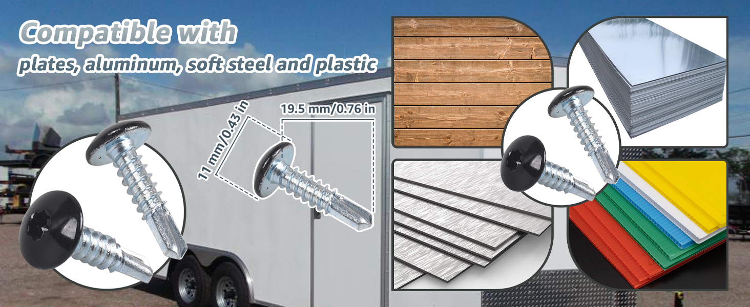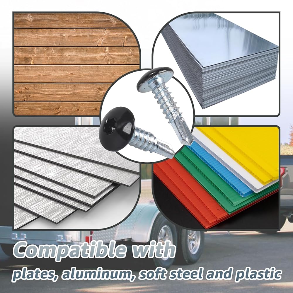 Durable Self-Tapping Design: These #10 x 3/4 inch self-tapping metal screws feature sharp threads that cut through trailer skin panels, aluminum sheets, and metal surfaces with ease, eliminating the need for pre-drilling