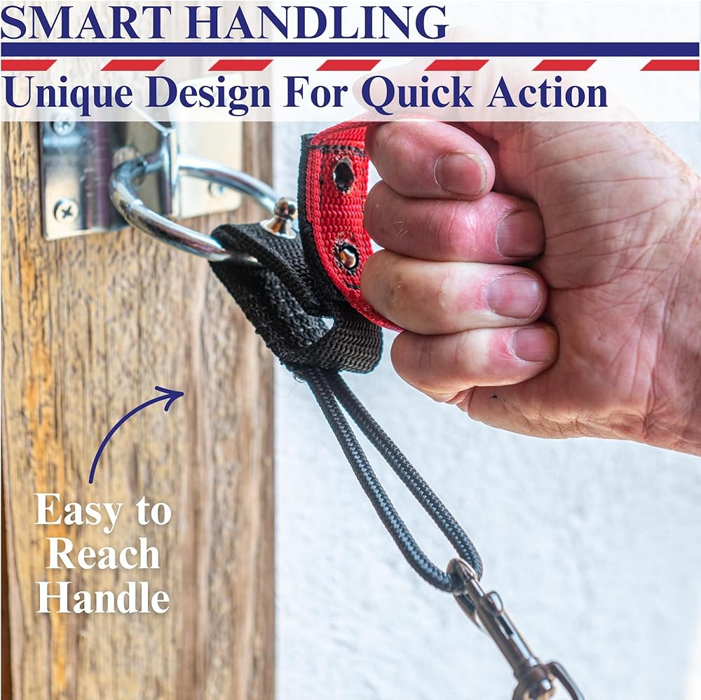 HANDLER-INITIATED RELEASE: Just pull the colored handle to release—no need to get close to snaps or a nervous horse. Designed for quick manual action when needed.