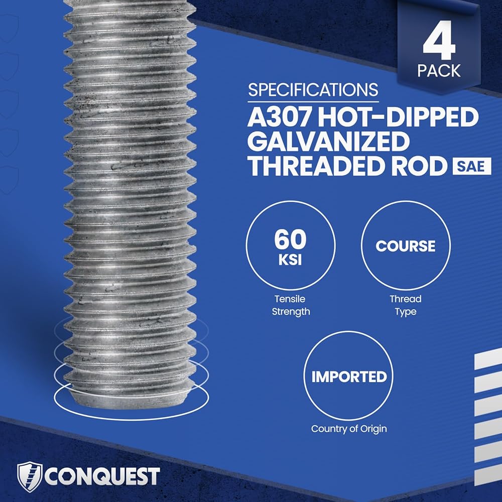 MATERIAL - A307 low strength (60 KSI), versatile carbon steel coarse fully threaded rod manufactured to the highest quality industry standards.