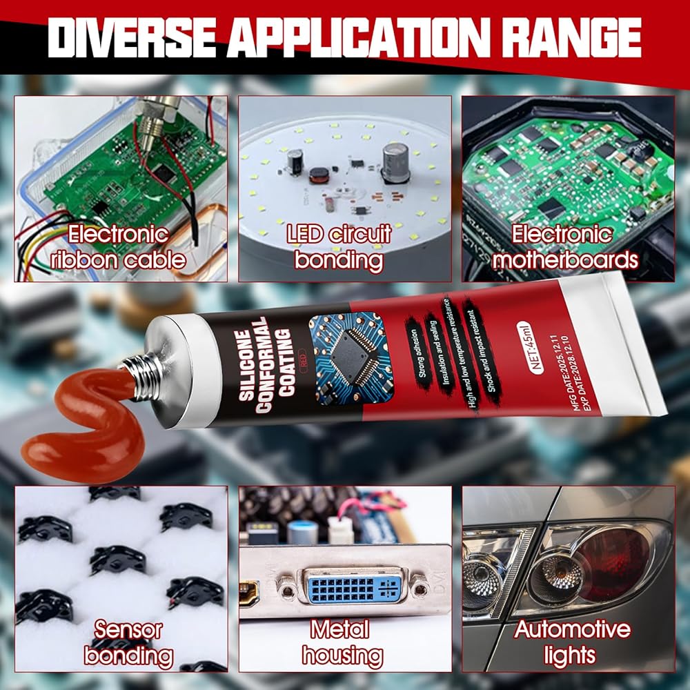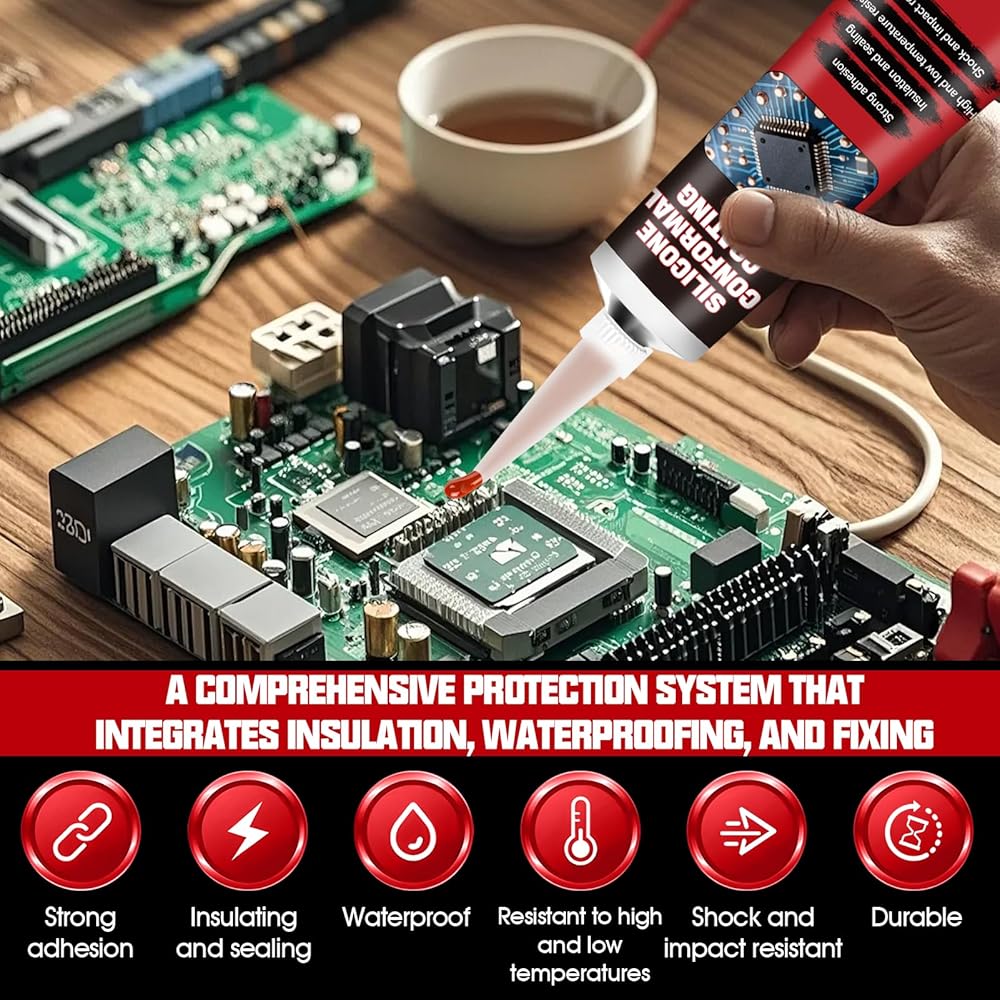 Electronic Sealant: This silicone conformal coating is specially designed to protect electronic components. After drying, it becomes a layer of elastic, soft adhesive. Like a protective raincoat, it tightly wraps around the various small components on the circuit board, resisting temperature changes and preventing dust and dirt from entering, making electronic devices last longer and safer