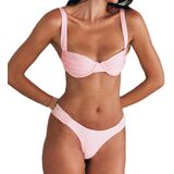Womens Plaid Bikini Swimsuits Sleeveless Bra Tops with Thong 2 Pcs Set Stylish Bikini Bathing Suit Women 2-Piece Bikini Swimsuits Solid Colors Ruched Bra and Elastic Thong Sets for Summer Beachwear Bathing Suit