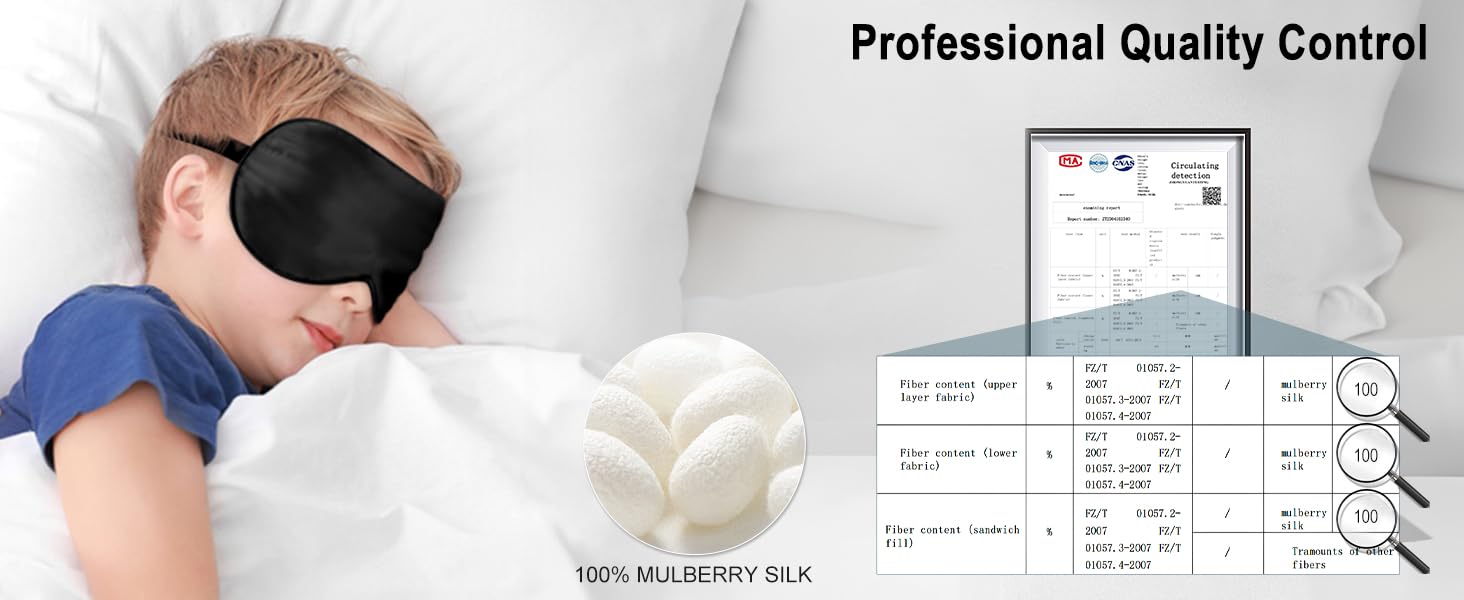 【High-quality 100% Mulberry Silk】This kids sleep mask is made of pure natural 100% hypoallergenic mulberry silk and filled with mulberry silk also. Is extremely gentle to children's eye skin, ensuring that the child is exposed to the safest and softest material while sleeping and avoiding irritation to the child's skin