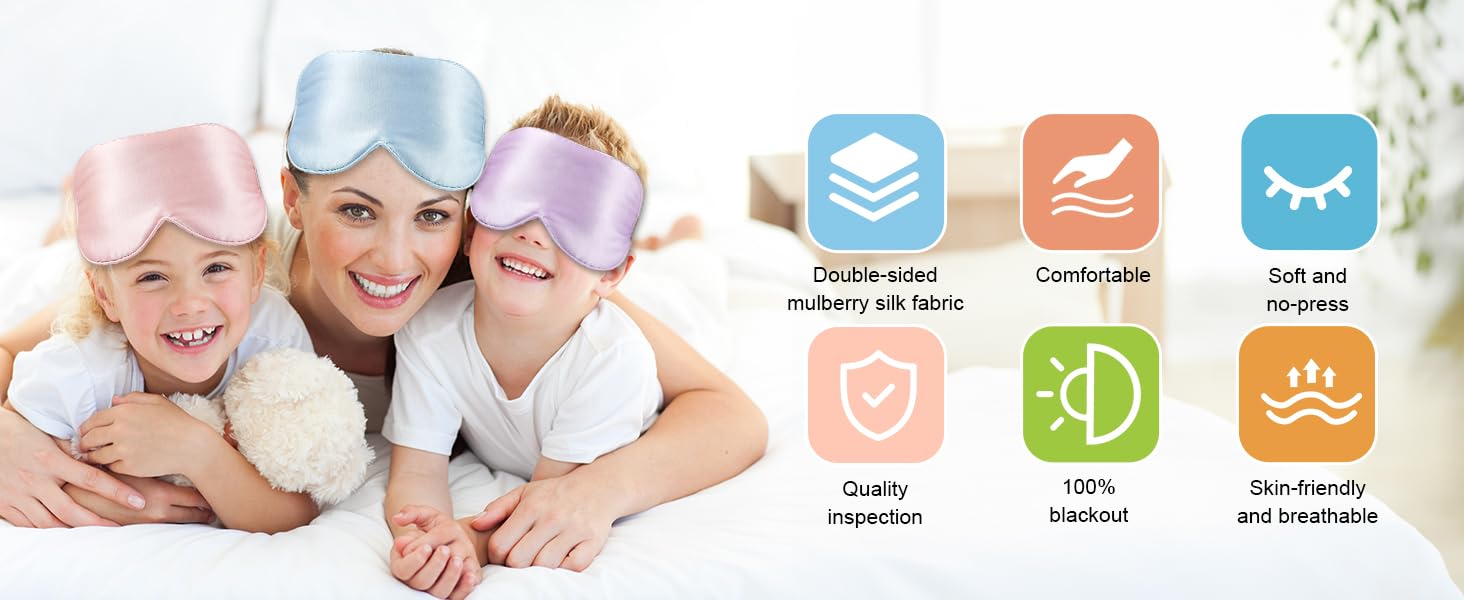 【Specially Designed for Kids】The silk eye masks is designed in a child size(Suitable for most children aged 5 to 15). Conforms to the curve of the child's head, and perfectly fits the eye contour, providing the most comfortable wearing experience for children