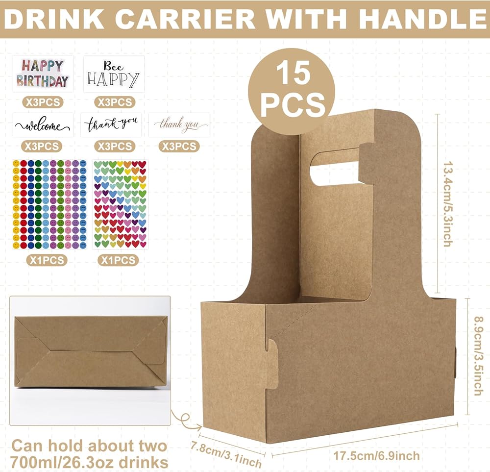 Classic Size: You will get 30pcs 2 drink carrier with handle and 5 different Happy Birthday stickers, 6 each, each carrier can hold two 8 oz - 20 oz cups securely to meet your different needs