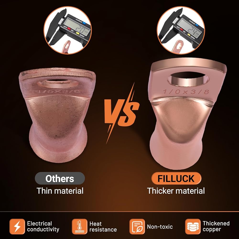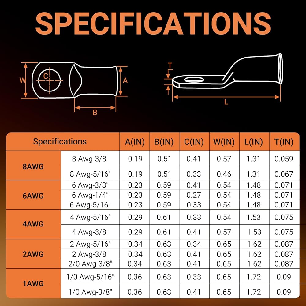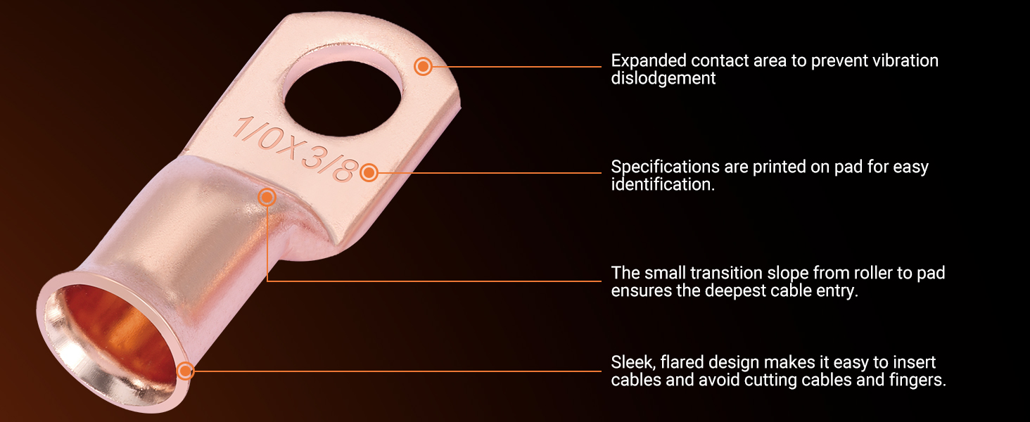 🧰Heavy Duty Construction:Battery cable ends are constructed of heavy-duty, pure copper for excellent conductivity and corrosion resistance. Heavy-duty construction ensures reliable performance at high currents and in harsh environments, making copper lugs ideal for demanding applications.