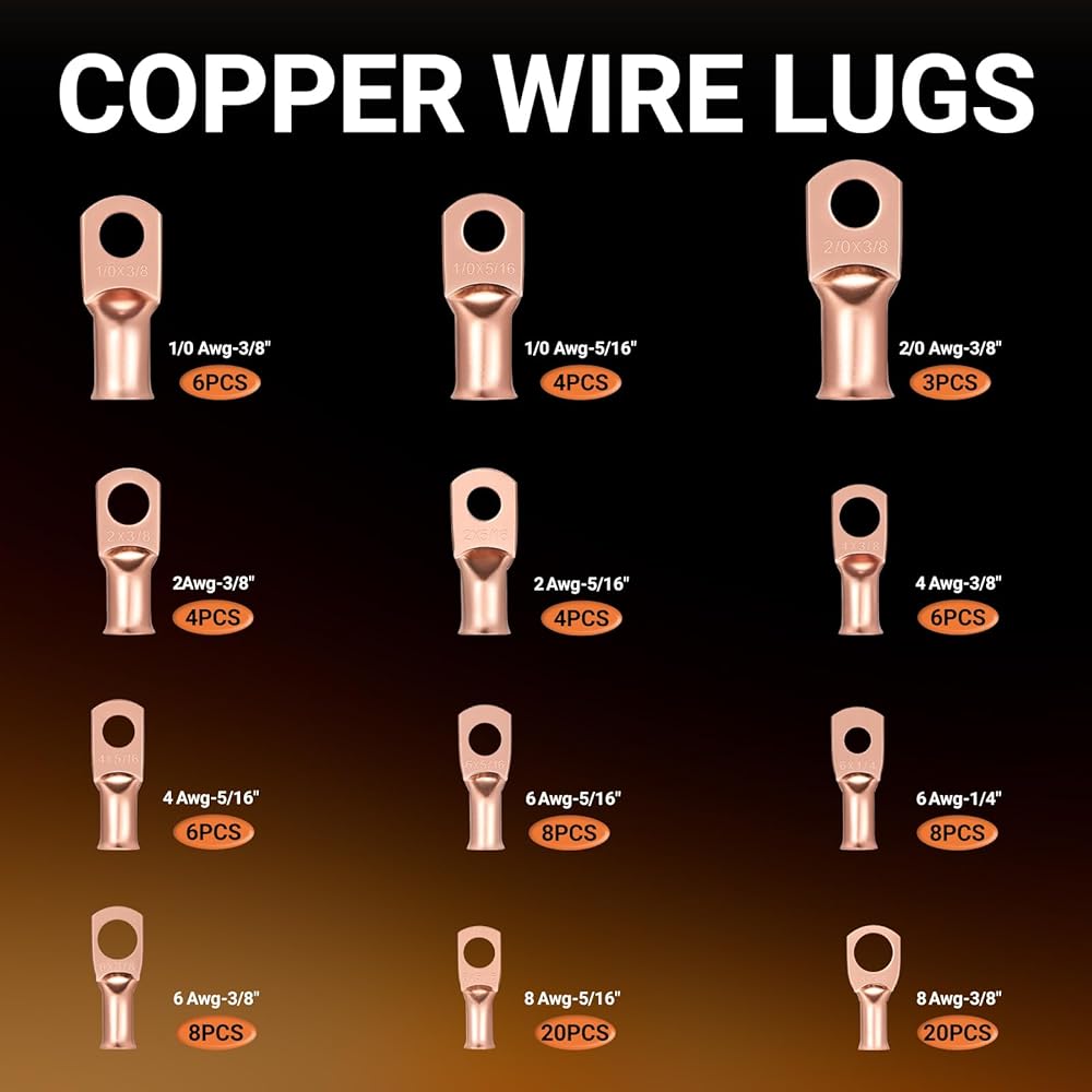 🧰How to choose:Provide a wide range of sizes and quantities, you can choose freely. Meet different project requirements by crimping or soldering; also used with copper cables to ensure a strong and reliable electrical connection. To ensure best results, please be sure to check battery terminals dimensions carefully. Please note audio cables (non-standard copper cables) may not be a direct match, so it is recommended to check size compatibility in particular.