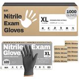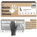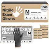 SUP Nitrile Exam Gloves, 1000 Ct Powder Free Latex Free Food Safe Non-Sterile Cooking Cleaning Disposable Medical Glove Black