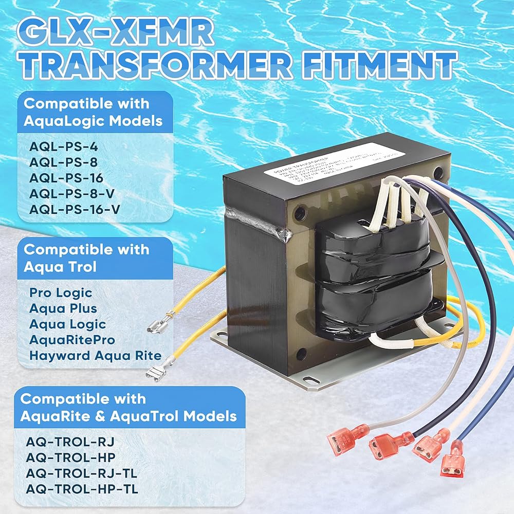 Applicable Models: GLX-XFMR Transformer compatible with Hayward Aqua Rite, Aqua Rite Pro, Aqua Trol, Pro Logic, Aqua Logic, Aqua Plus, Compatible with AquaRite and AquaTrol Models: AQ-TROL-RJ; AQ-TROL-RJ-TL; AQ-TROL-HP; AQ-TROL-HP-TL,Compatible with AquaLogic Models: AQL-PS-4; AQL-PS-8-V; AQL-PS-8; AQL-PS-16-V; AQL-PS-16