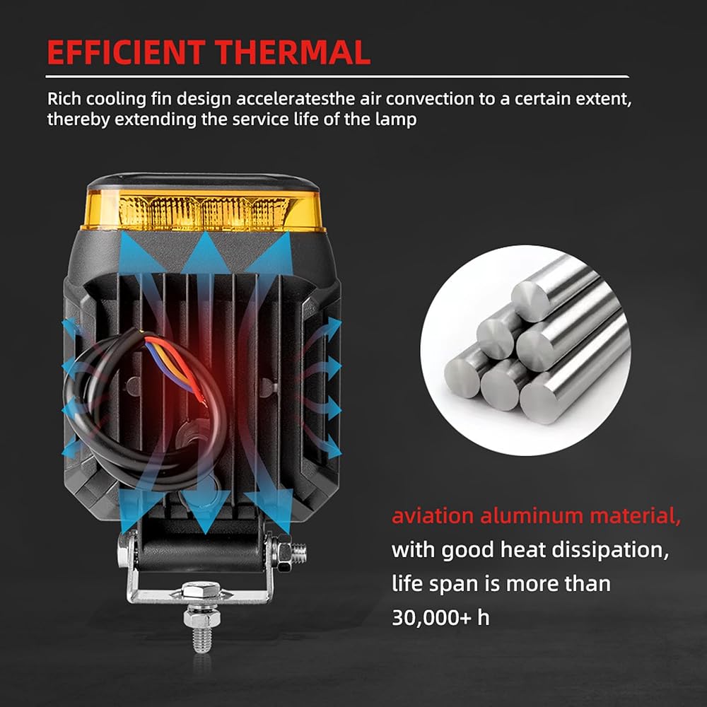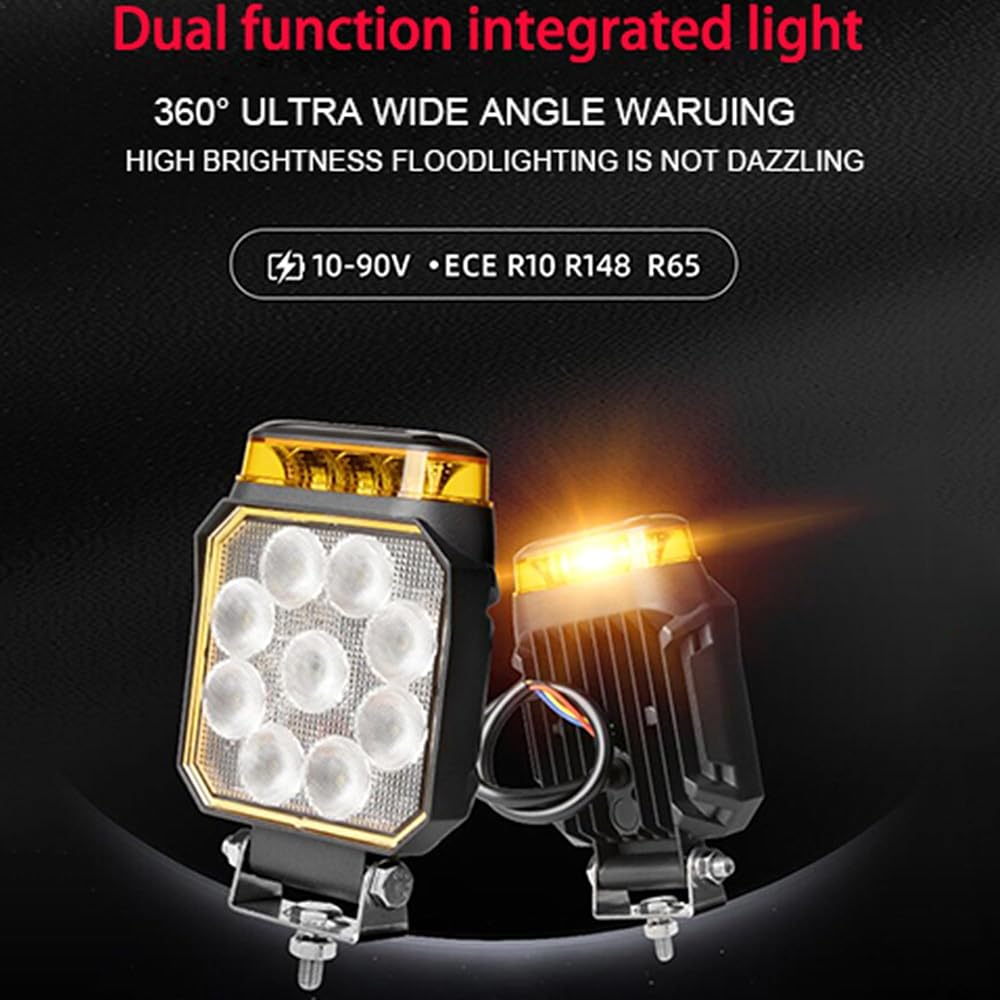 🚨【4 Flashing Modes + Bright Floodlight】 Choose from 4 amber strobe function for warnings, paired with a weatherproof 6500K floodlight for versatile task lighting in any condition.