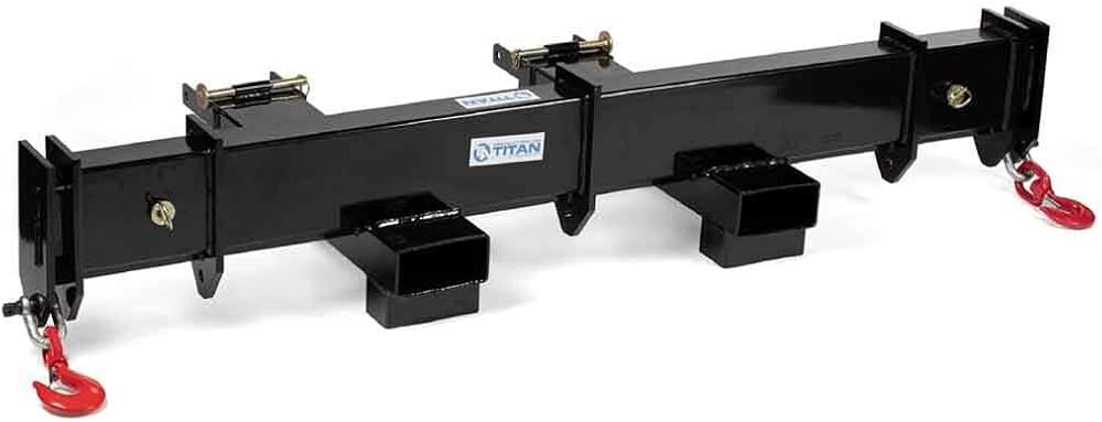 TRANSPORT LONG MATERIAL: The forklift. spreader beam is a must-have for construction and fabrication companies that deal with long material and need to transport without it bending or breaking. Easily transport and lift. beams, pipes, sheet metal, rebar, and more, effectively with Titan's 7.5-foot Adjustable Spreader Beam.