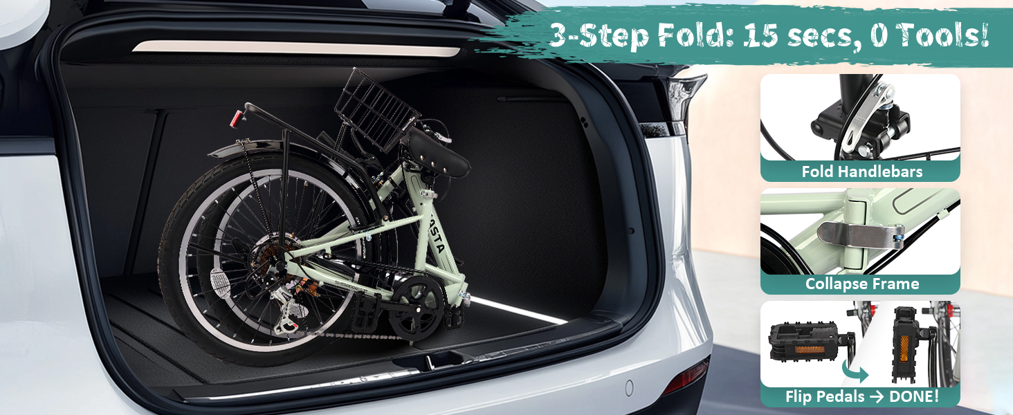 - 🚲【Quick-Fold & Go Design】Effortlessly folds compact for storage and transport. Sets up in seconds–ride almost immediately after unboxing!