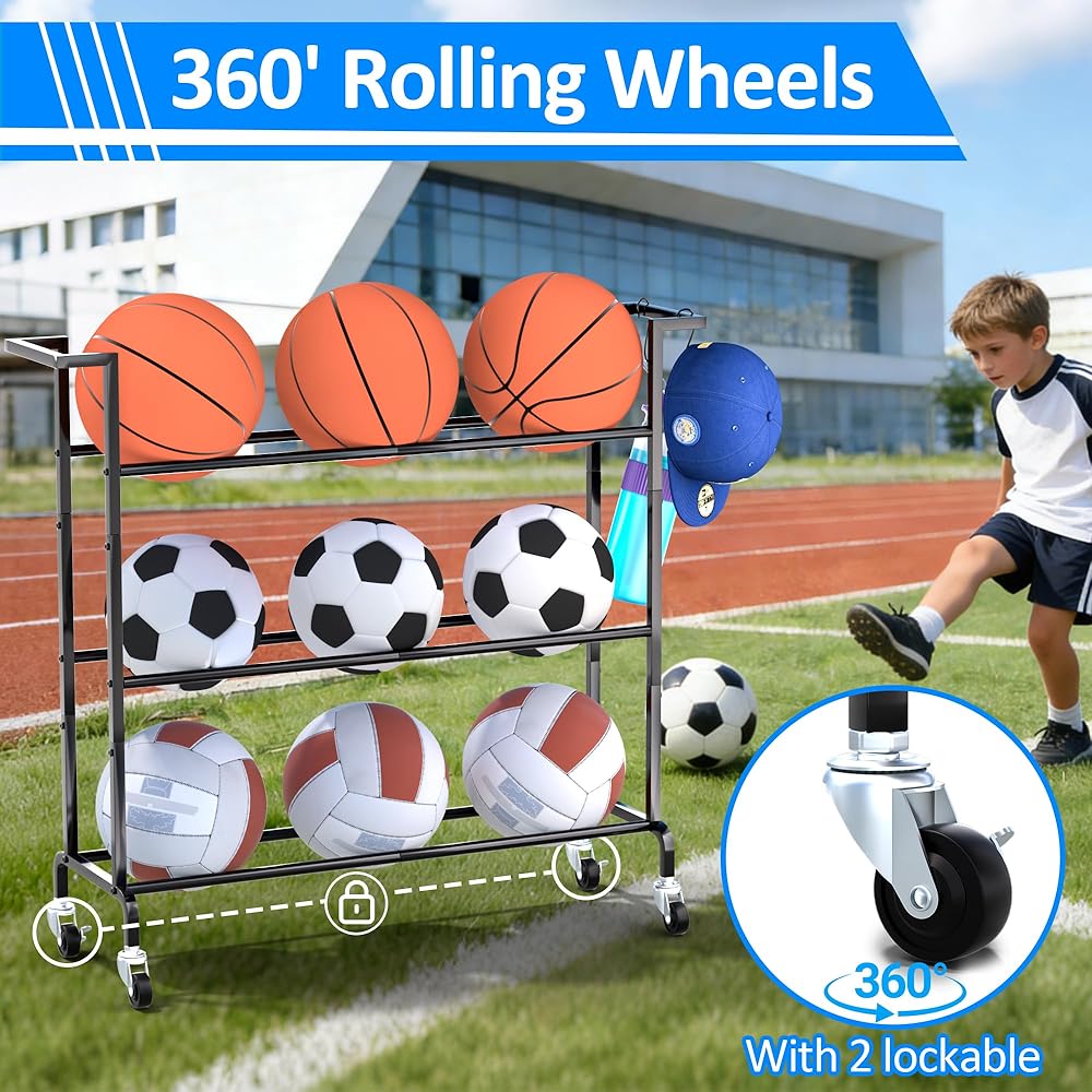 【Durable & Sturdy Structure】The basketball cart is made of durable metal, with a stable and long-lasting structure. With the instructions provided, the installation can be easily and simply completed.