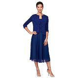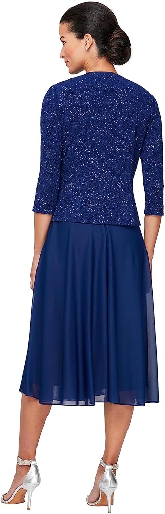 Alex Evenings Women's Tea Length Mock Dress with Sequin Jacket (Petite and Regular Sizes)