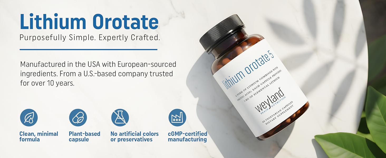Lithium Orotate is a form of Lithium that is combined with orotic acid, which is thought to increase bioavailability relative to other forms.*