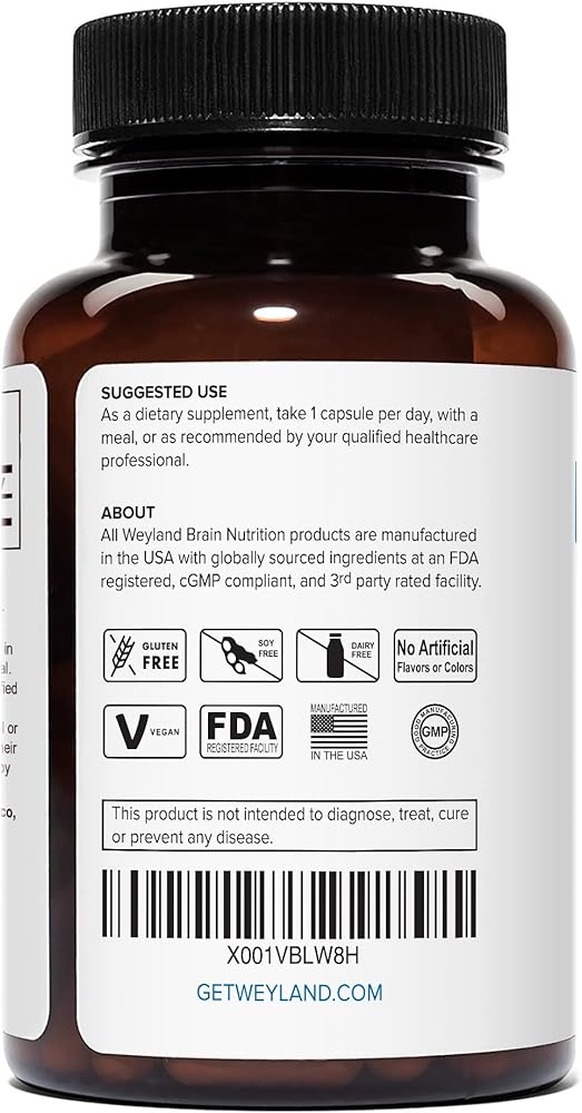 All Weyland Brain Nutrition products are manufactured in the USA with globally sourced ingredients at an FDA registered, cGMP compliant, and 3rd party rated facility.