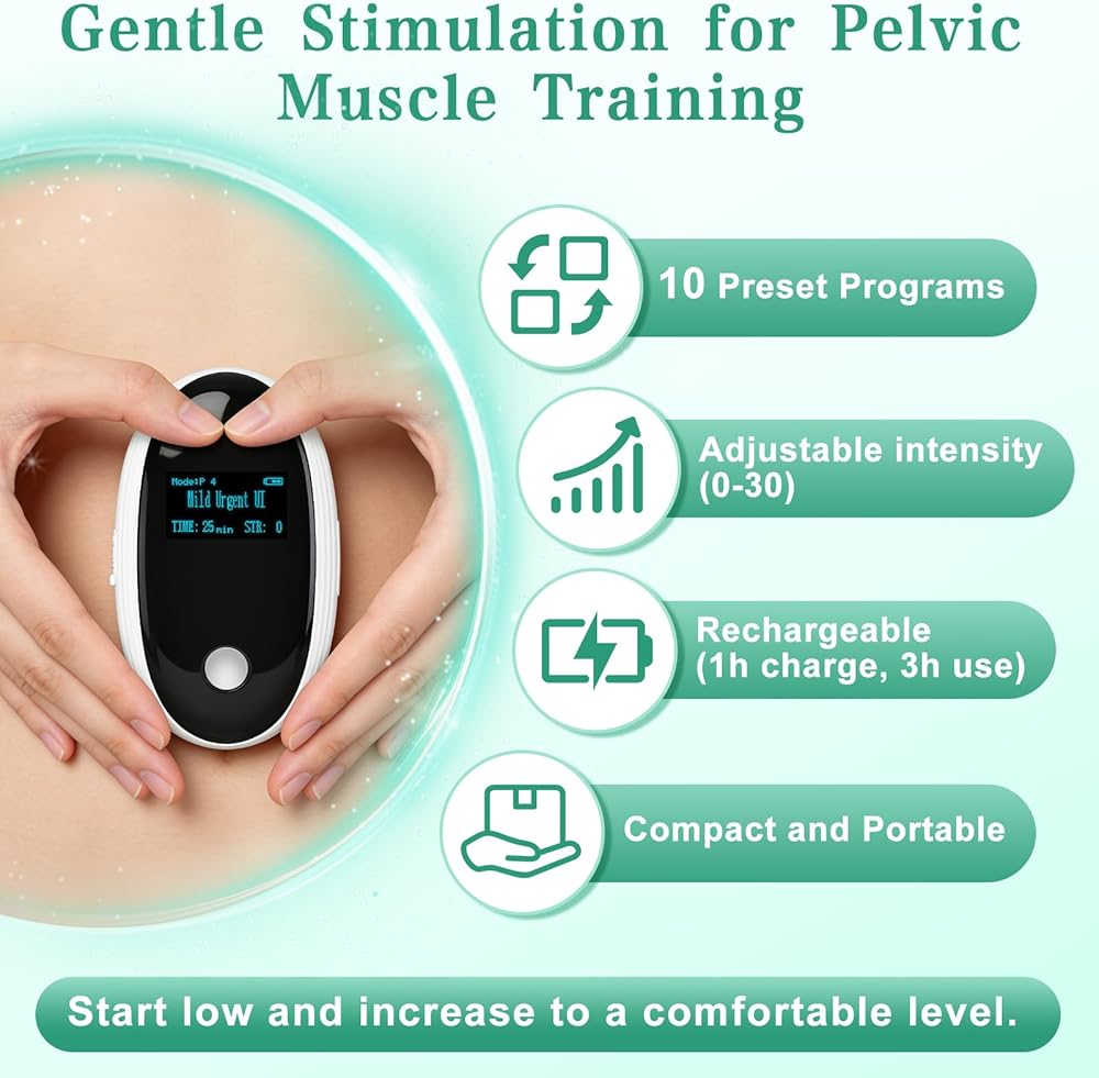 【EASY TO USE】The pelvic floor stimulator is very simple to use. The intensity of each program can be fully controlled by the simple +/- buttons.. Its compact size makes it easy to carry. Whether at home or traveling, you can integrate pelvic floor muscle exercises into your daily life. (For more detailed information, please refer to our user manual. Please read the manual carefully before use.)