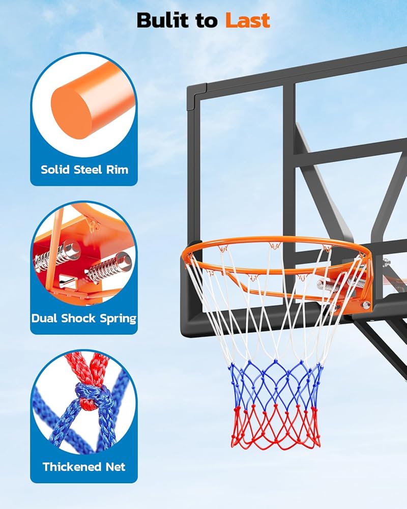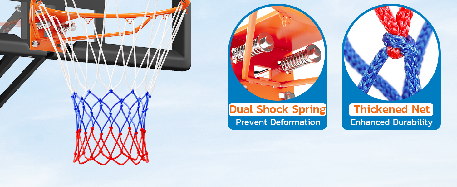 [All Weather Net]This basketball rim comes with a 70g net that is heavier and denser, quickly returning to its original shape. Designed for all-weather use, it effectively resists corrosion and ensures long-lasting durability