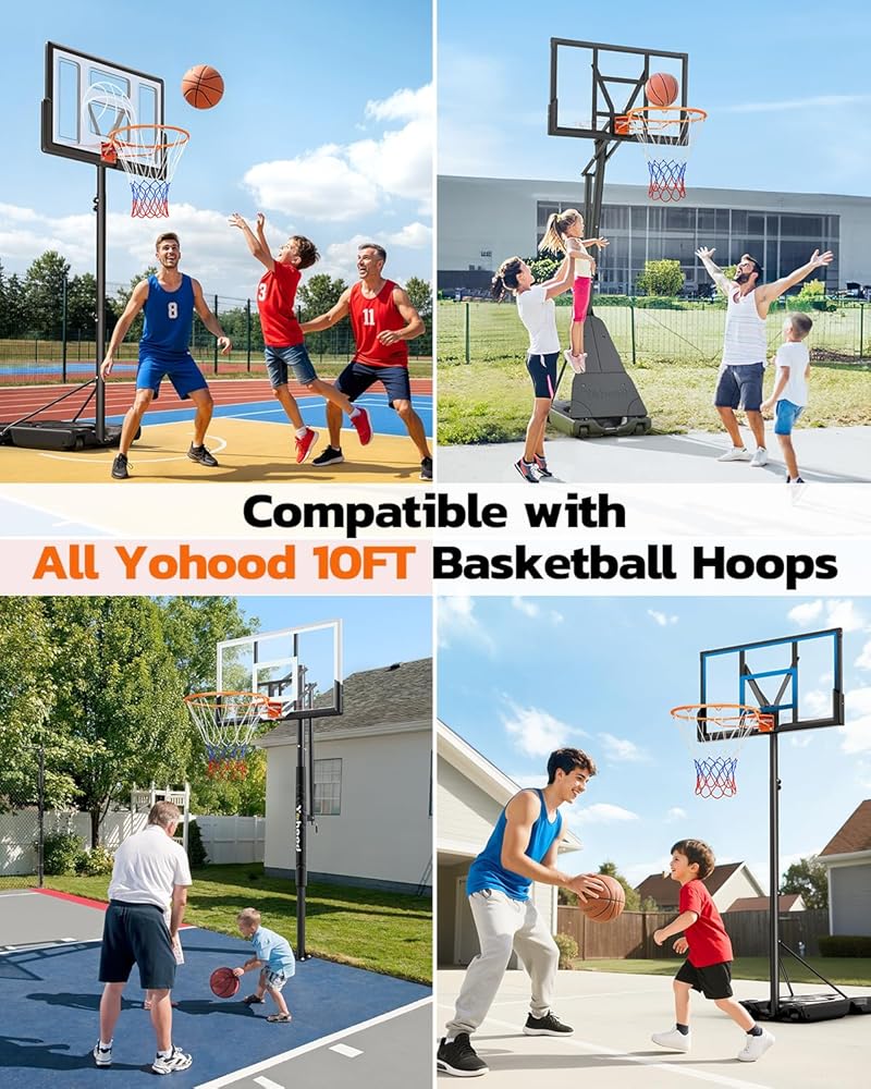 [Important Note]:If you plan to use this basketball rim to replace your existing basketball hoop, please carefully check the dimensions to ensure your hoop's hole pattern falls within our size range. Compatible with most hoops on the market with a 3.94" × 2.76" pattern, as well as all Yohood 10 ft basketball systems