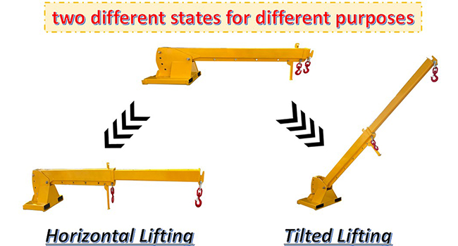 【Strong Compatibility】-Fork Pocket Inner Size: 6.3"x2.56". This jib boom crane attachments can be compatible with multiple forklifts. It equipped with doublefork desig, easily transform your equipment into a mobile crane with this handy attachment.