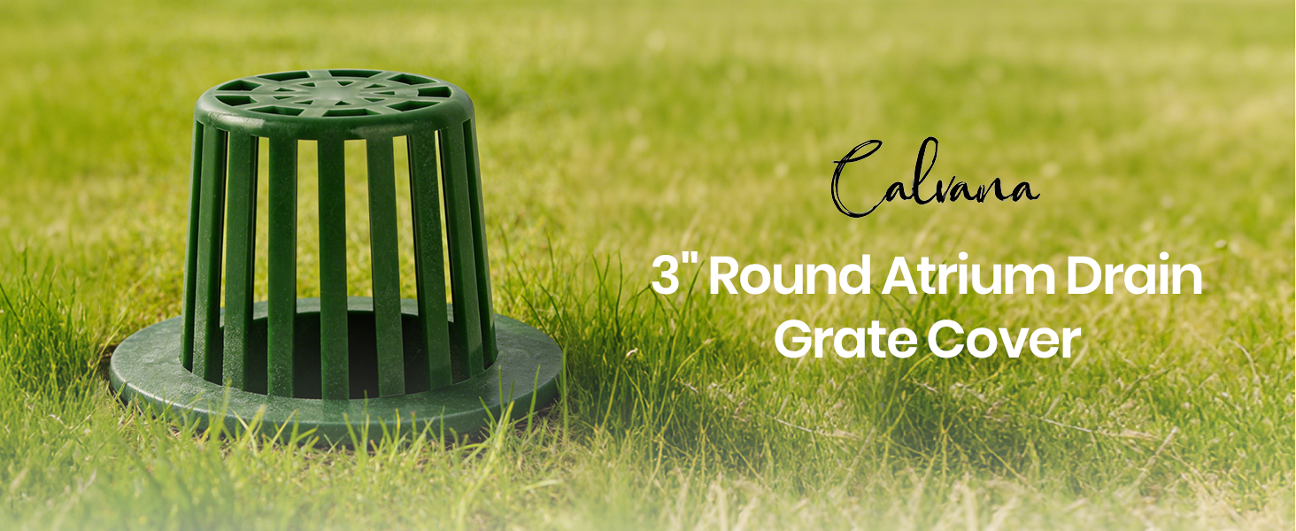 (3-Pack) Calvana 3" Round Atrium Drain Grate Cover, Compatible with NDS 78A, Fits 4" Sewer and Drain Pipe Fittings, Perfect for Small Lawns, Landscaping, Patios, Extra Tough Polyethylene, Green