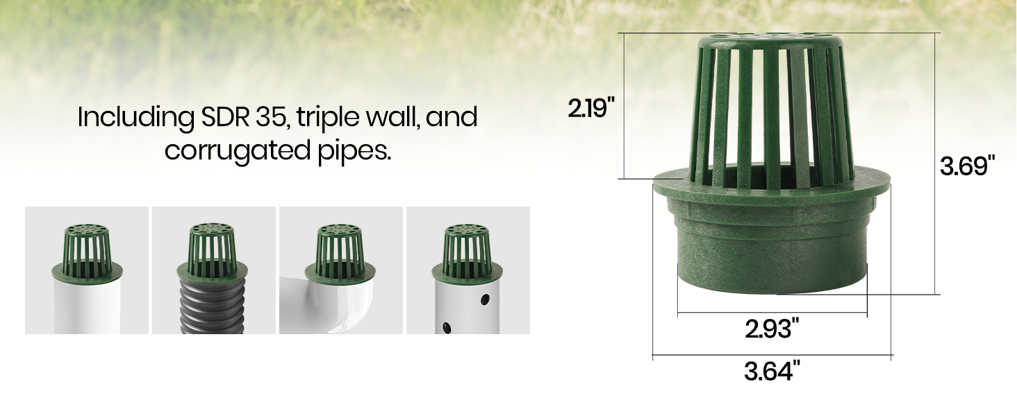 Fits 3-Inch Pipes: Perfectly fits 3" sewer and drain pipes, including SDR 35, triple wall, and corrugated pipes. Just make sure your PVC fittings have a belled end for a proper fit