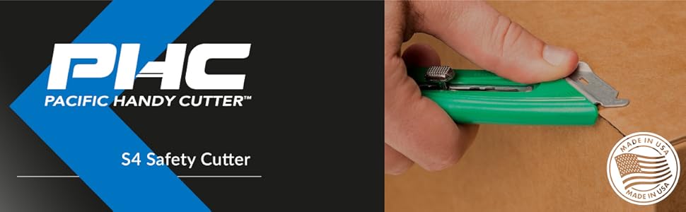 Pacific Handy Cutter S4R Safety Cutter, Retractable Utility Knife with an Ergonomical Design, Bladeless Tape Splitter, Steel Guard for Safety and Damage Protection, for Warehouse and In-Store Cutting , Green