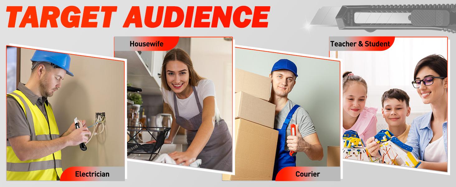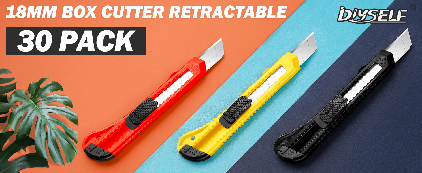 Utility Knife Retractable:18mm wider blade for deep and easy cutting. Prevent blade slipping with the lock tab. Always keep your blade fresh and sharp by snapping off the blade for a new sharp cutting tip
