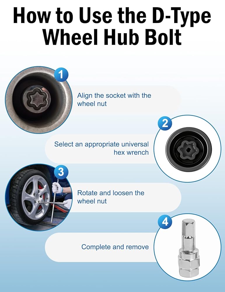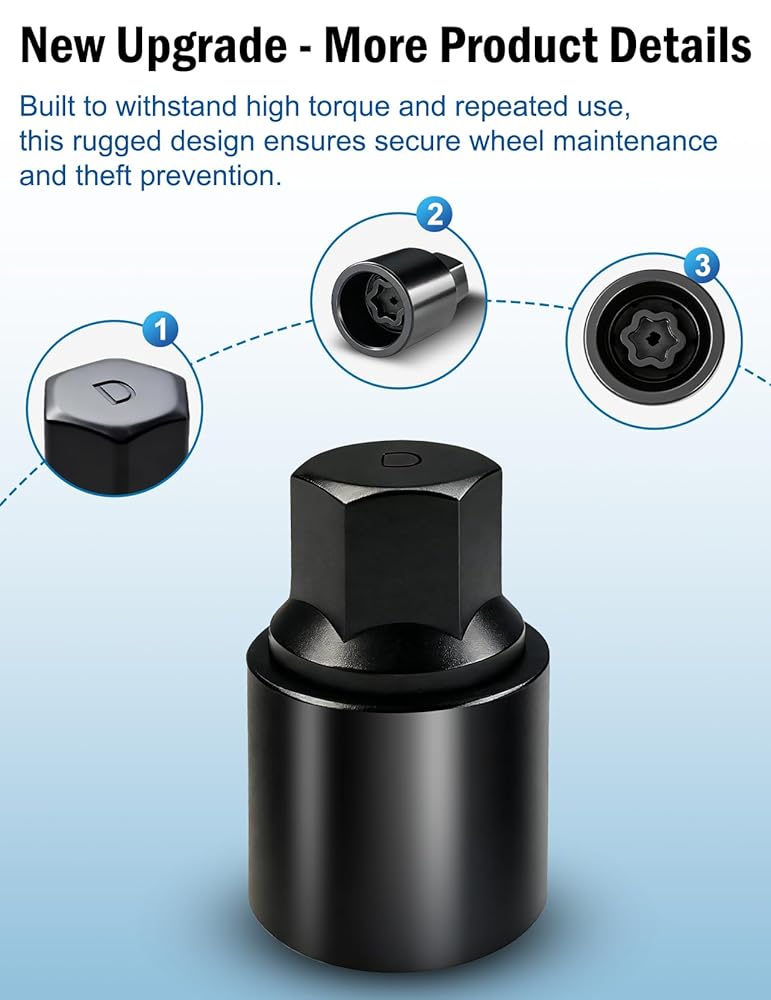 • تم تصميمها بدقة لتتناسب مع أقفال العجلات على شكل حرف D من أجل ملاءمة آمنة وغير قابلة للانزلاق. يضمن المشاركة المثالية مع صواميل العروة المتوافقة المضادة للسرقة