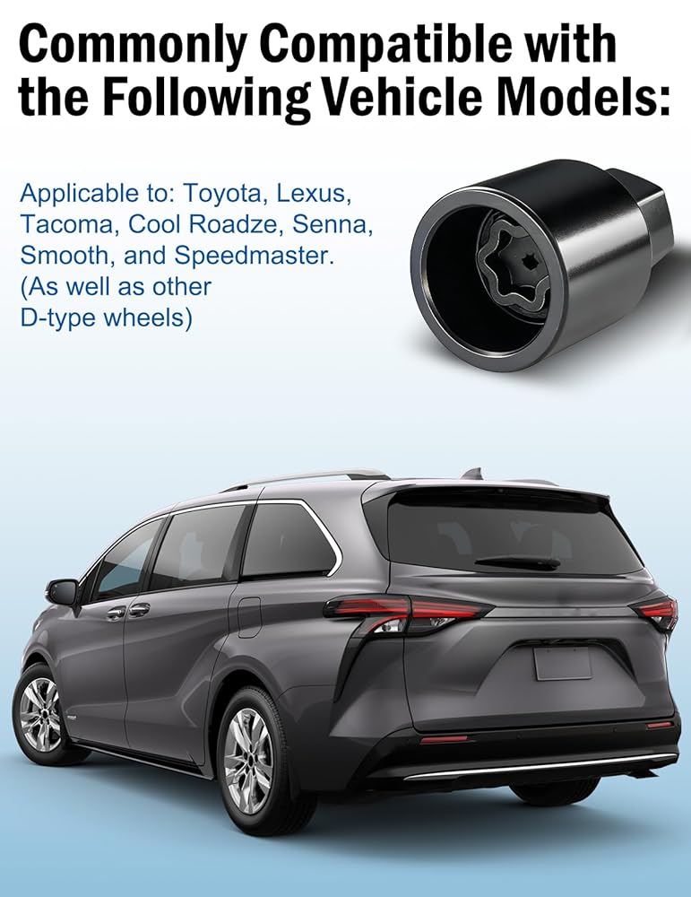 مفتاح قفل العجلة على شكل حرف D لتويوتا، ولكزس، وتاكوما، أداة إزالة صامولة العروة المضادة للسرقة، قمة سداسية قياسية للمفاتيح القياسية، أداة إزالة صامولة العروة على شكل حرف D