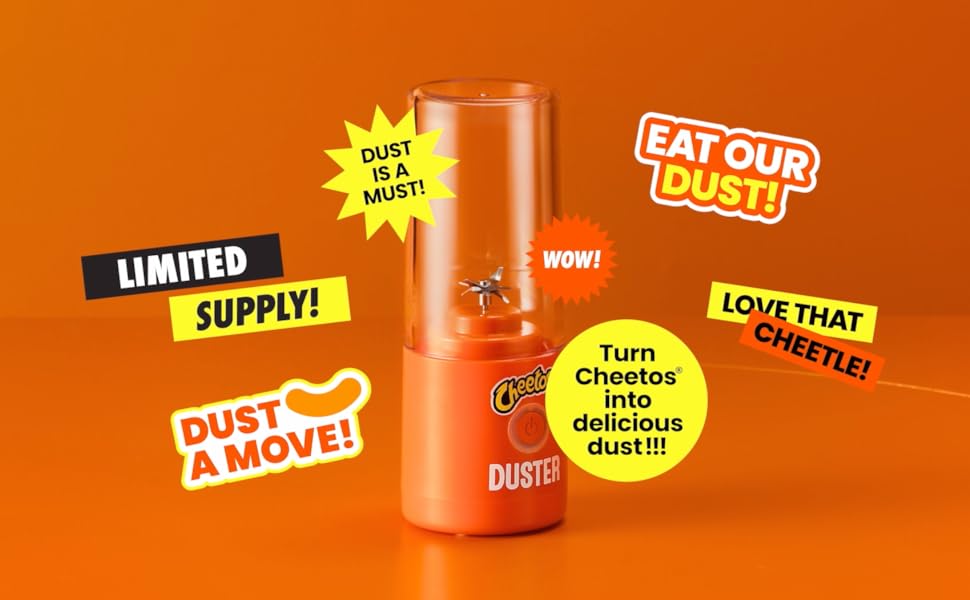- Back By Popular Demand - Turn Cheetos Into delicious dust with the Cheetos Duster. Great with mac and cheese, fries, popcorn, hot dogs and more.
