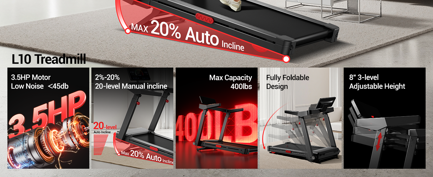 2%–20% Auto Incline:This treadmill with auto incline for Maximum Burn Elevate your workout with one-touch incline control. Whether you're walking, running, or crushing HIIT sessions, this motorized incline treadmill mimics commercial-grade machines to target muscles and accelerate fat loss.