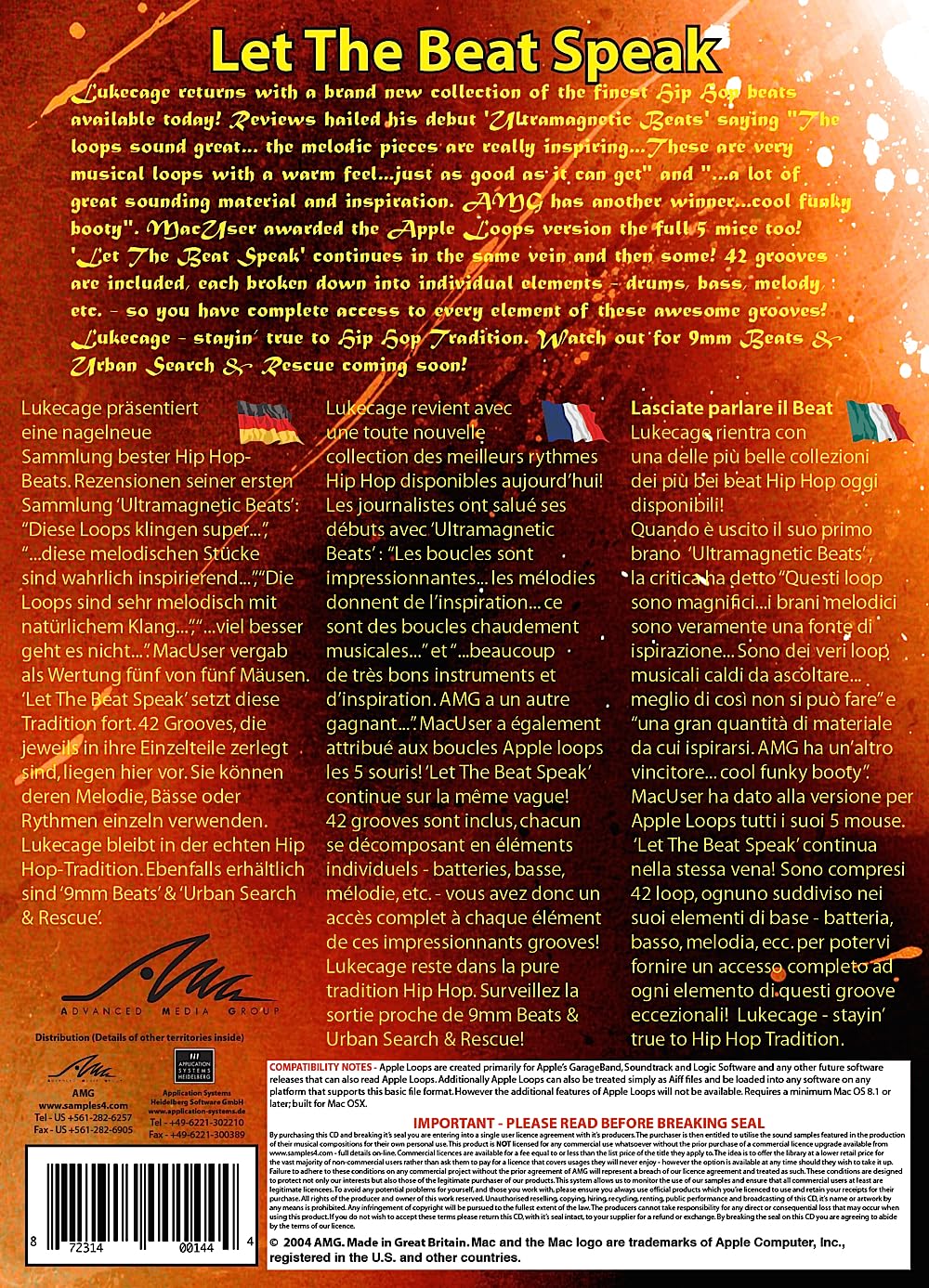 Chances are you'll know all about Lukecage very soon... This CD, and his other AMG CDs - 'UltraMagnetic Beats', 'Urban Search & Rescue', '9mm Beats' and more are already causing a stir in the hip hop World!