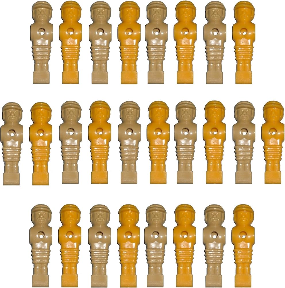 Player dimensions: 4.25" H with leg width of .875" Hole diameter: .625" Leg Width: 7/8" Hole Diameter: 5/8" Set of 26 for 3 man goalie tables or to have a couple extra men on a 1 goalie table.