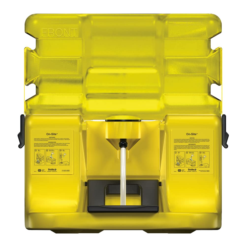 On-site gravity fed portable eyewash, Holds 7 gallons of potable water, Lower tank houses push down eyewash tray, SEI certified to ANSI Z358.1-2009. Full, one-year warranty, water preservative not included.