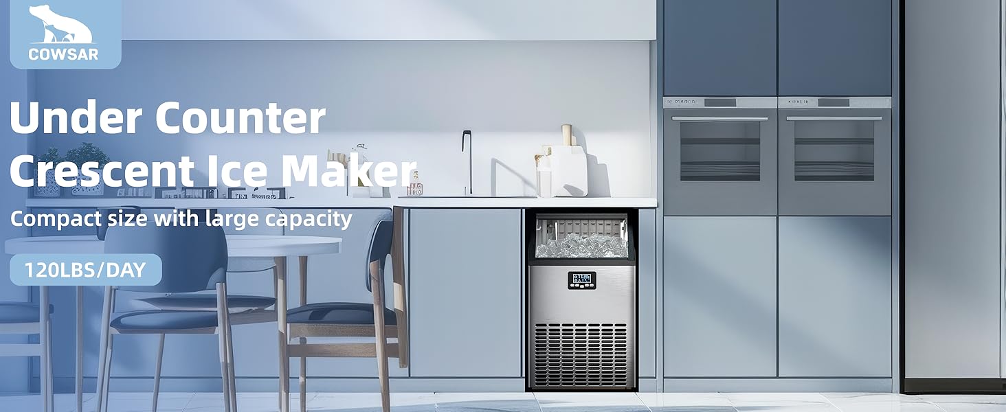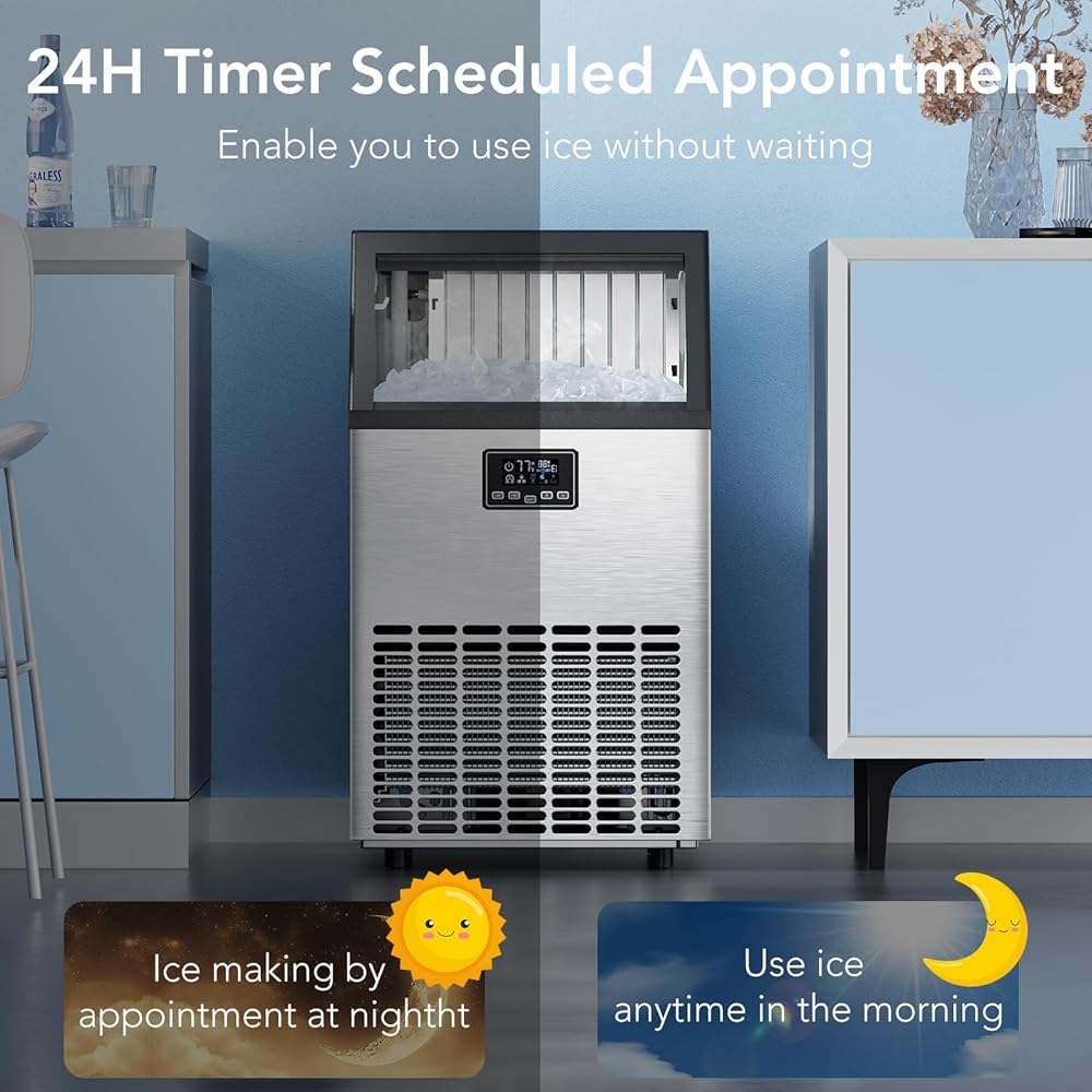 Fast & Continuous Ice Production: Produces up to 120 lbs of ice per day with a quick cycle time (12-20 minutes per batch). Features an energy-efficient commercial compressor for quiet operation, high performance, and eco-friendly use. Suitable for both home and commercial settings (bars, restaurants, hotels, etc.). Perfect for kitchens, outdoor events, and businesses needing a reliable ice supply.