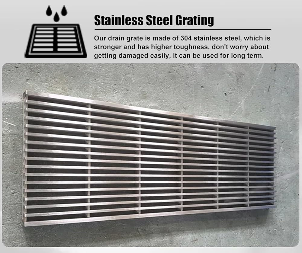 • Upgrade Your Drainage System with Our Stainless Steel Drain Grate. Designed for Durability and Strength, This Linear Bar Cover Offers Reliable Performance for Your Home or Business. Resistant to Corrosion and Wear, It Ensures Long-Lasting Use. Perfect for Kitchens, Bathrooms, and Outdoor Areas, This Grate Combines Functionality and Style in One Elegant Solution.