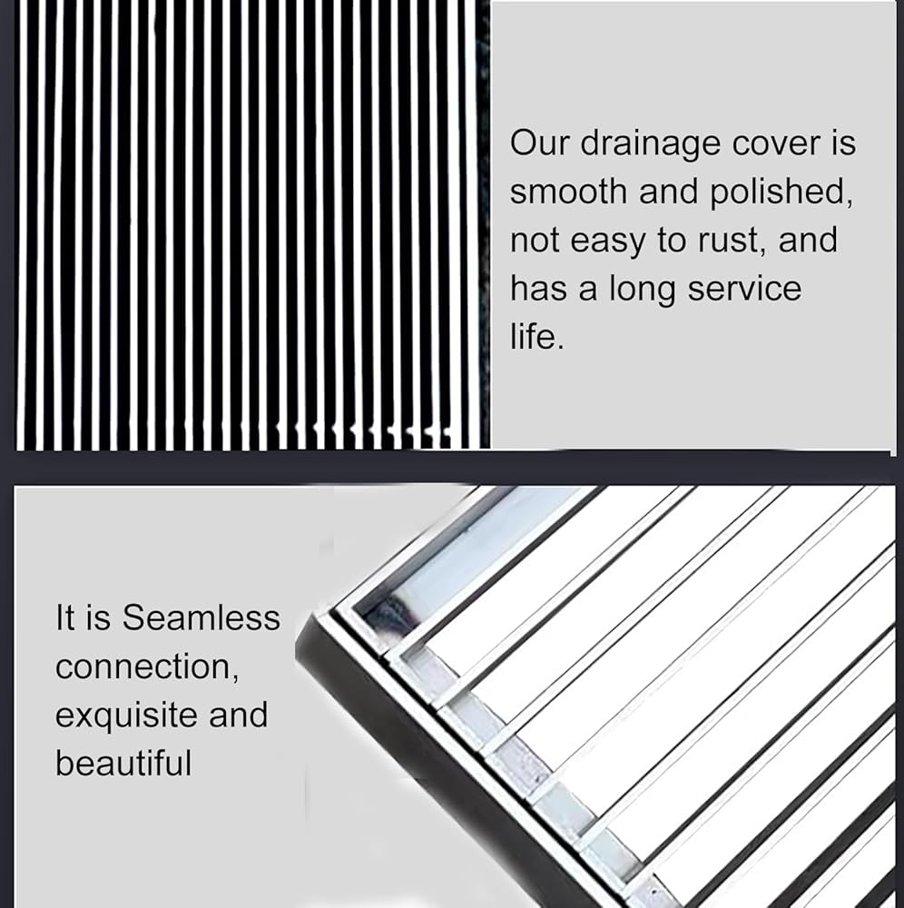 • Upgrade Your Drainage System with Our Stainless Steel Drain Grate. Designed for Durability and Strength, This Linear Bar Cover Offers Reliable Performance for Your Home or Business. Resistant to Corrosion and Wear, It Ensures Long-Lasting Use. Perfect for Kitchens, Bathrooms, and Outdoor Areas, This Grate Combines Functionality and Style in One Elegant Solution.