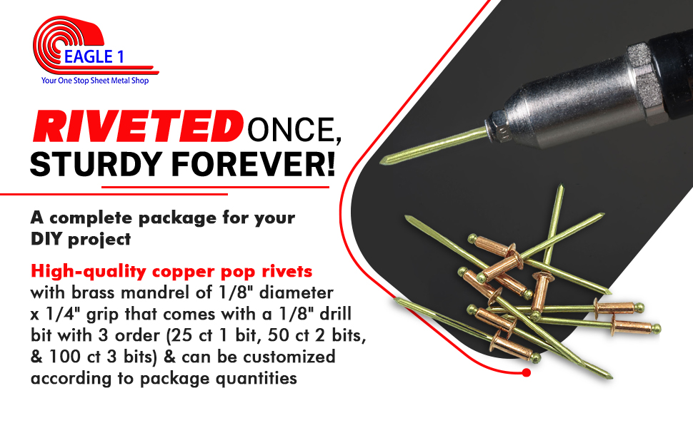 {Premium Quality} - 100% Copper Body. - Weather and wear and tear resistant. - Corrosion resistant. - Stays rust free for a long time. - Robust strength. Rivet once, sturdy forever!
