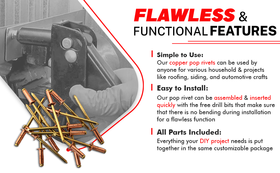 {Versatile Utility} - Perfect for copper, brass, gutter seams and aluminum trim coil. - Perfect for any DIY project (Roofing, Siding, Automotive) - Package includes everything you need to rivet your project at home.