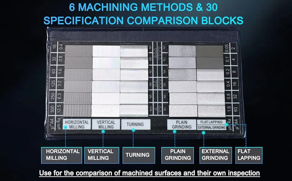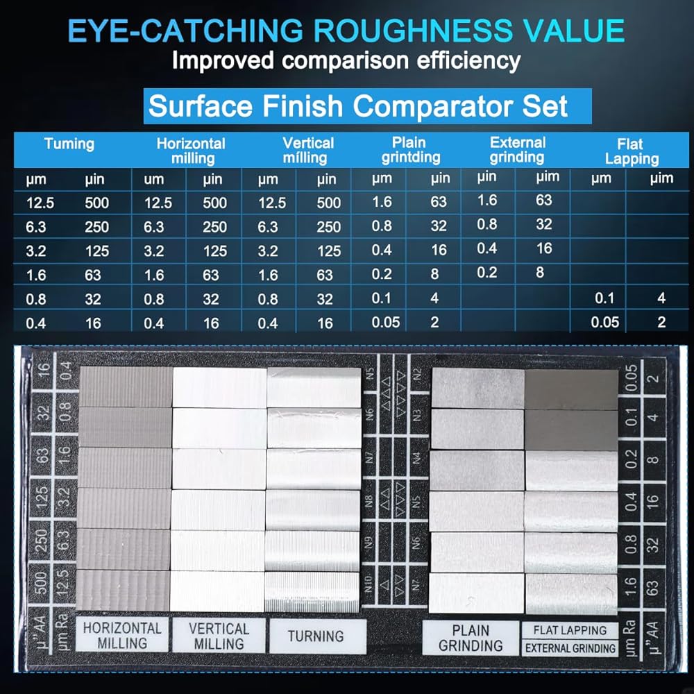 【Universal Application Across Manufacturing】 This comprehensive set is the essential Comparator for Machinery Manufacturing. It's ideal for Mechanical Inspection Roughness Comparator duties, instrument calibration, and quality assurance on the shop floor. Whether you're working with a Surface Roughness Comparator for Lathe, mill, or grinder, this kit provides the Surface Profile Roughness Comparator reference needed to ensure every part meets spec.